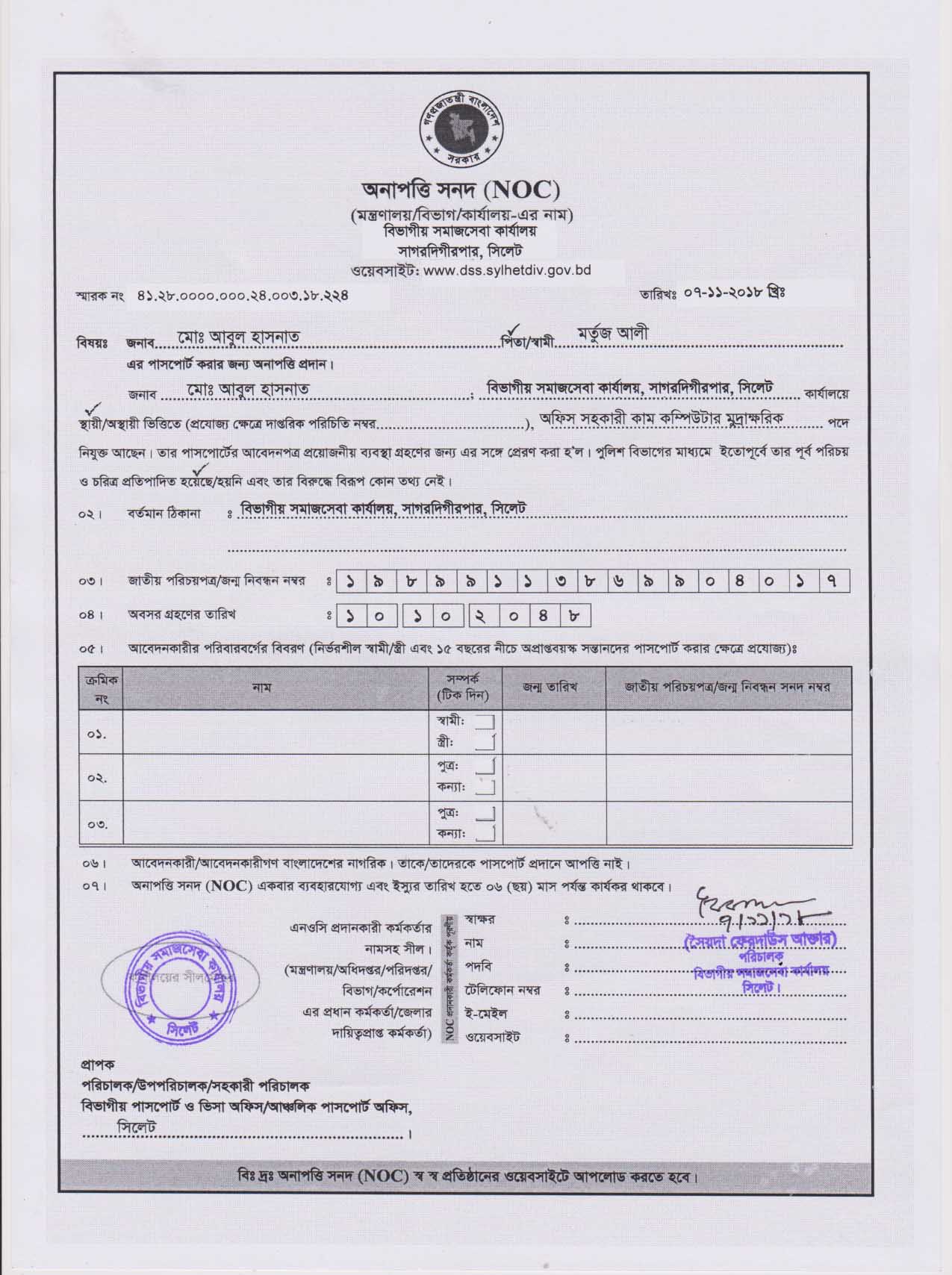 ৩৮ বিভাগীয় অনাপত্তিপত্র প্রদান সংক্রান্ত পত্র ১১-১১-২০১৮