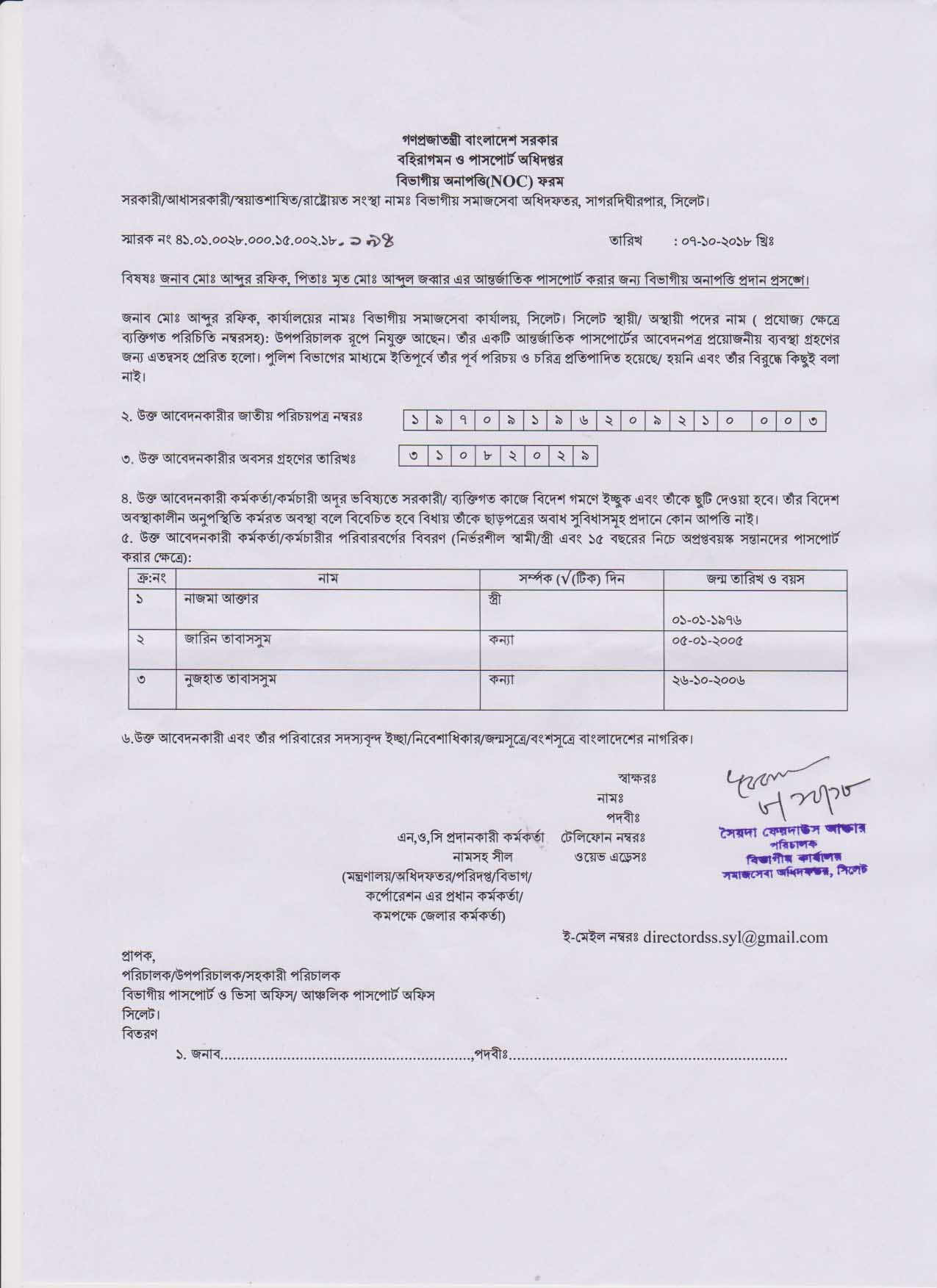 ৪০ বিভাগীয় অনাপত্তিপত্র প্রদান সংক্রান্ত পত্র ১৮-১০-২০১৮