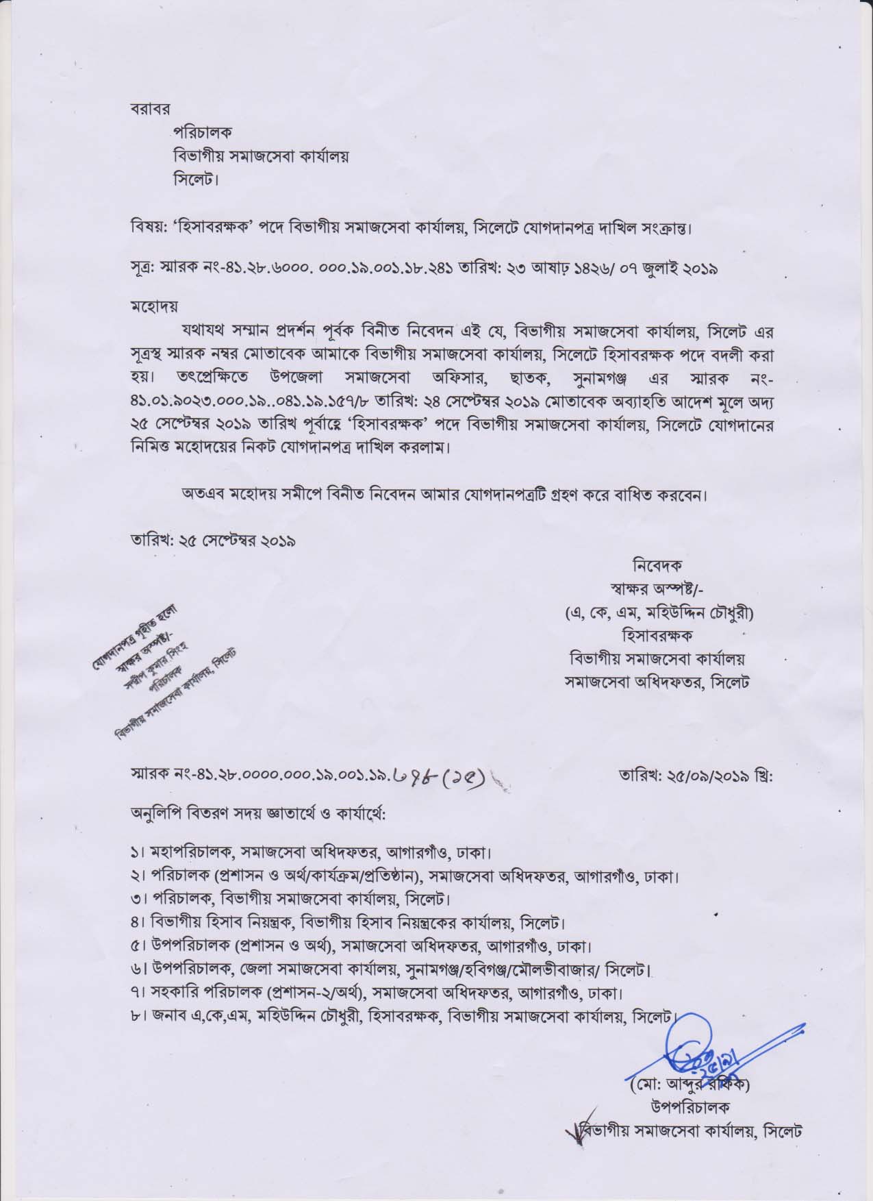 ২৭ সিলেট জেলার তিনজন কর্মকর্তার বদলী সংক্রান্ত। ১৪-১১-২০১৯